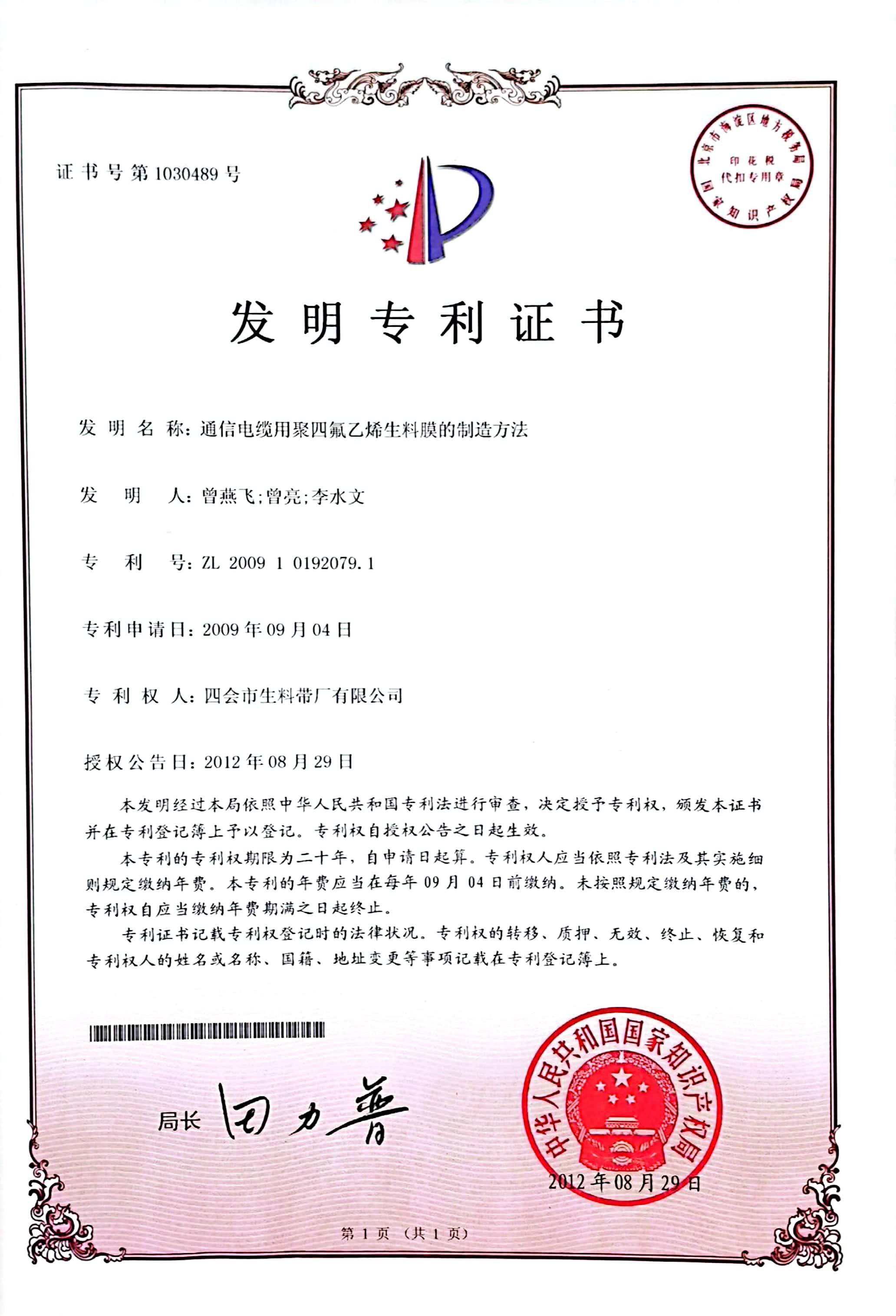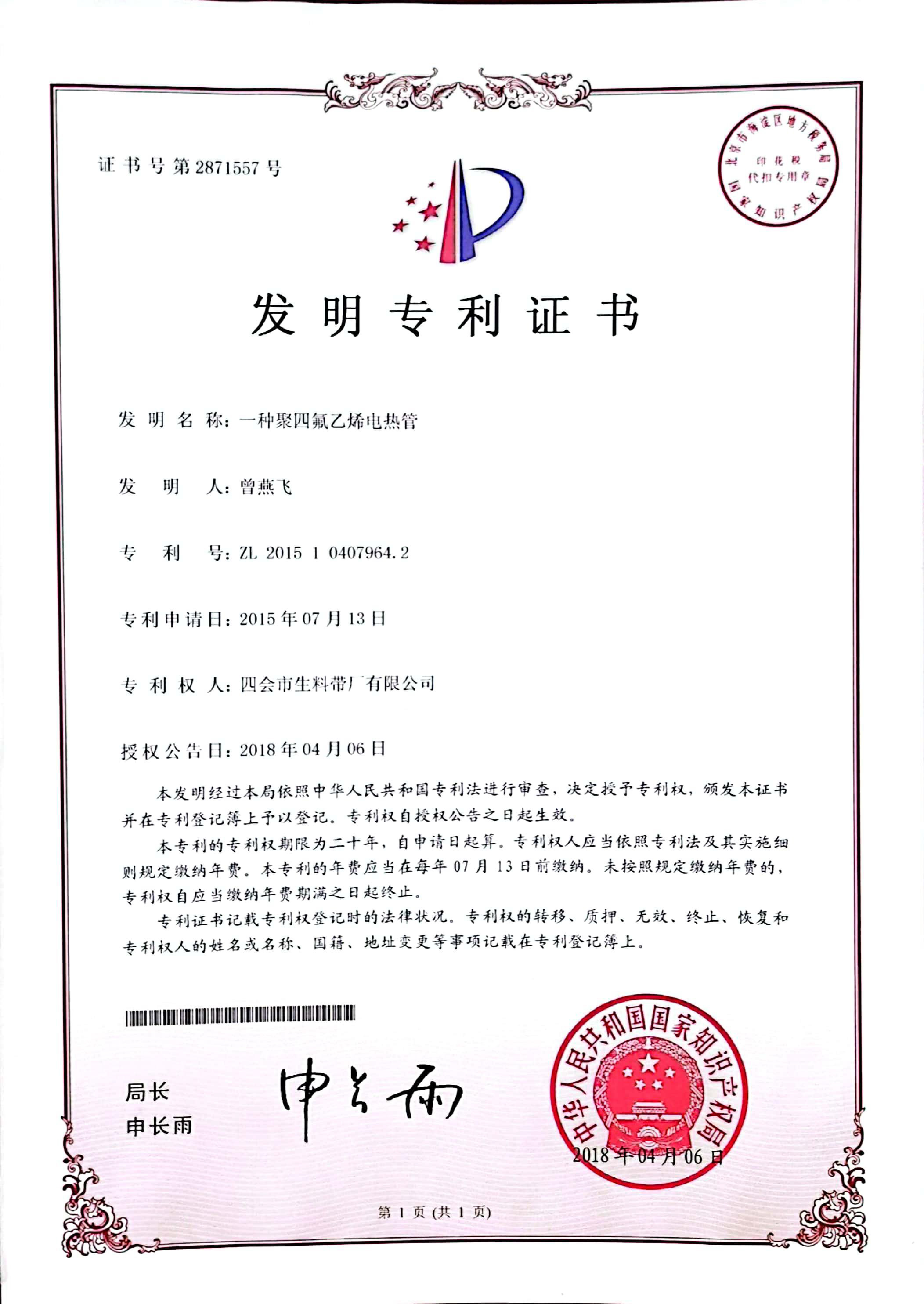 Nuestra empresa participa en la redacción por parte del Ministerio nacional de la luz del estándar industrial "Rosca sellada con cinta de PTFE"; se convierte en la Asociación China de la Industria de Procesamiento de Plásticos del comité profesional de procesamiento de plásticos de las unidades rectoras; fue valorada como "Empresa Privada de Ciencia y Tecnología de Guangdong" por el departamento provincial de ciencia y tecnología; la marca "FORWA" fue nombrada como una marca famosa de la provincia de Guangdong desde 2006. Hay ocho patentes inventivas, catorce modelos de utilidad. patentes, seis patentes de diseño de apariencia y cuatro derechos de autor de obras de software que pertenecen a la empresa; el "desarrollo y aplicación de cintas de teflón" desarrollado de forma independiente está acreditado como un Departamento Provincial de Ciencia y Tecnología de logros científicos y tecnológicos. La cinta de PTFE de color y la cadena de sellado de hilo de alta resistencia se atribuyeron a "productos de alta tecnología" y "productos de autoinnovación" de la provincia de Guangdong, y obtuvieron la autorización de patente de invención nacional. La sarta de sellado de roscas de alta resistencia recibió la aprobación de material del Programa de Asesoramiento sobre Regulaciones del Agua (WRAS).